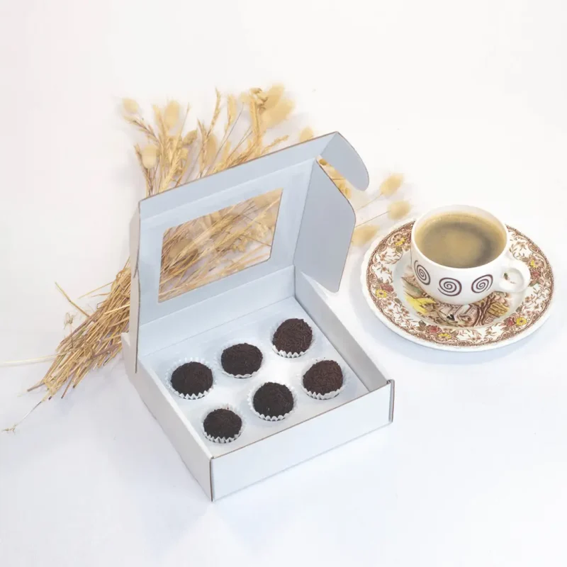Caixa Branca para 6 Brigadeiros (com Janela e divisória)