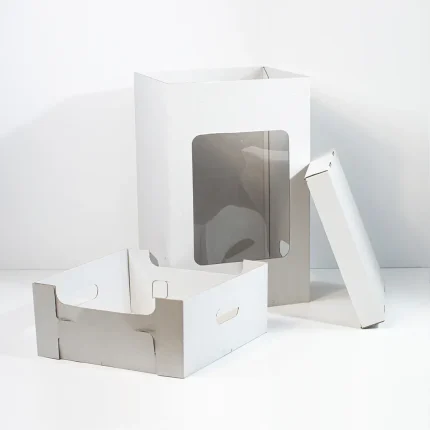 Disponibilizamos uma ampla gama de modelos — desde caixas com janela transparente, ideais para valorizar a decoração, até versões totalmente fechadas, indicadas para um transporte mais discreto e protegido. Cada detalhe foi pensado para preservar a estética e a estrutura do bolo até ao destino final.