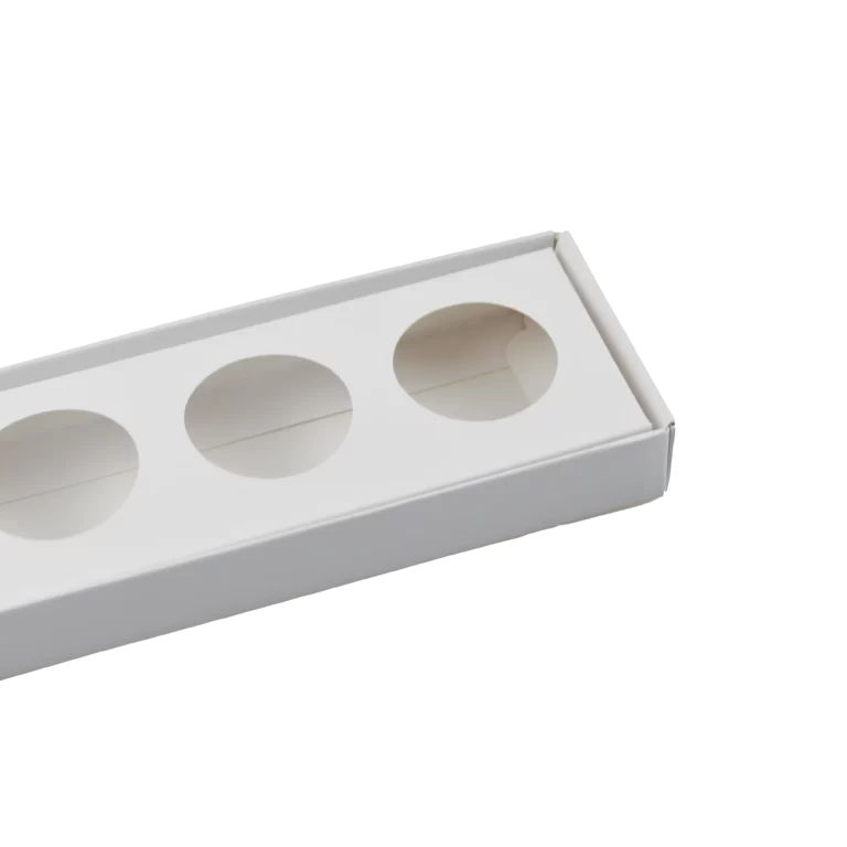 Caixa Cartolina Branca com Tampa PVC para 4 Brigadeiros 18×5,5x5cm