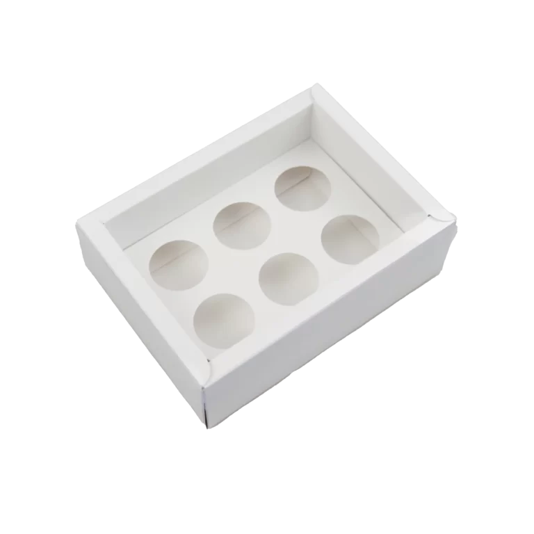 Caixa em cartolina branca para 6 brigadeiros com tampa transparente, pensada para oferecer uma apresentação cuidada e profissional dos seus doces. A tampa em PVC permite uma visualização clara do produto, aumentando o seu impacto visual e tornando-o mais atrativo para o cliente final.
