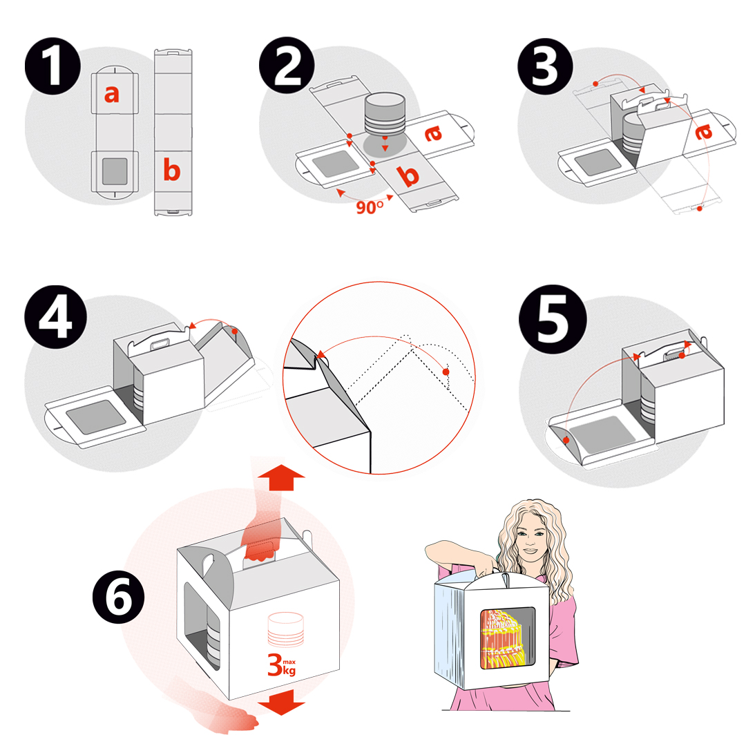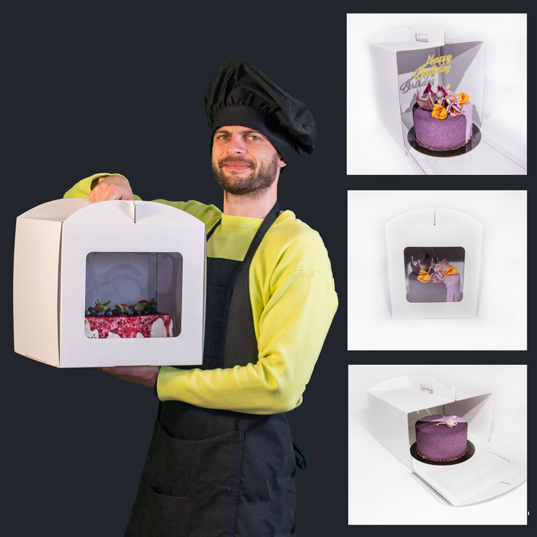 A caixa de cartão para bolos é destinada a embalagem e armazenamento de produtos culinários feitos ou por encomenda. Graças ao cartão resistente e ecológico, nossa caixa pode proteger o seu bolo de danos mecânicos durante o transporte.